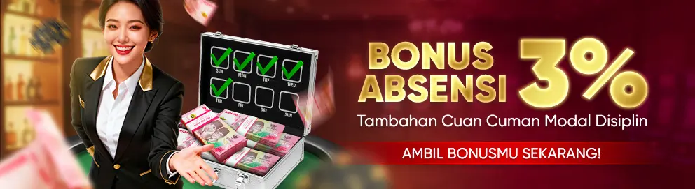 Bonus Absensi 3% Dari Total Nilai Deposit